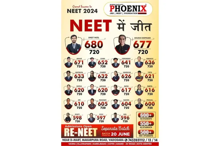 Phoenix offers a wide range of academic and competitive exam programs, including School Education, NEET Preparation, JEE Coaching, GUJCET, and CUET. Each program is designed with a balanced focus on conceptual understanding, board exams, and entrance exam excellence.